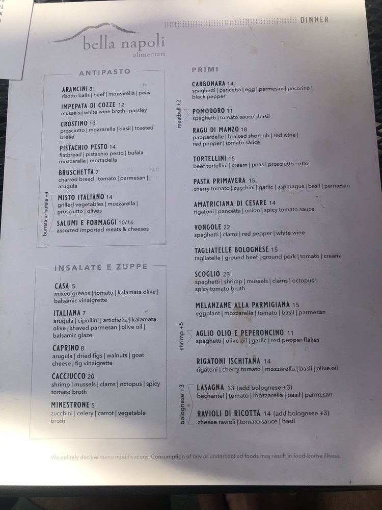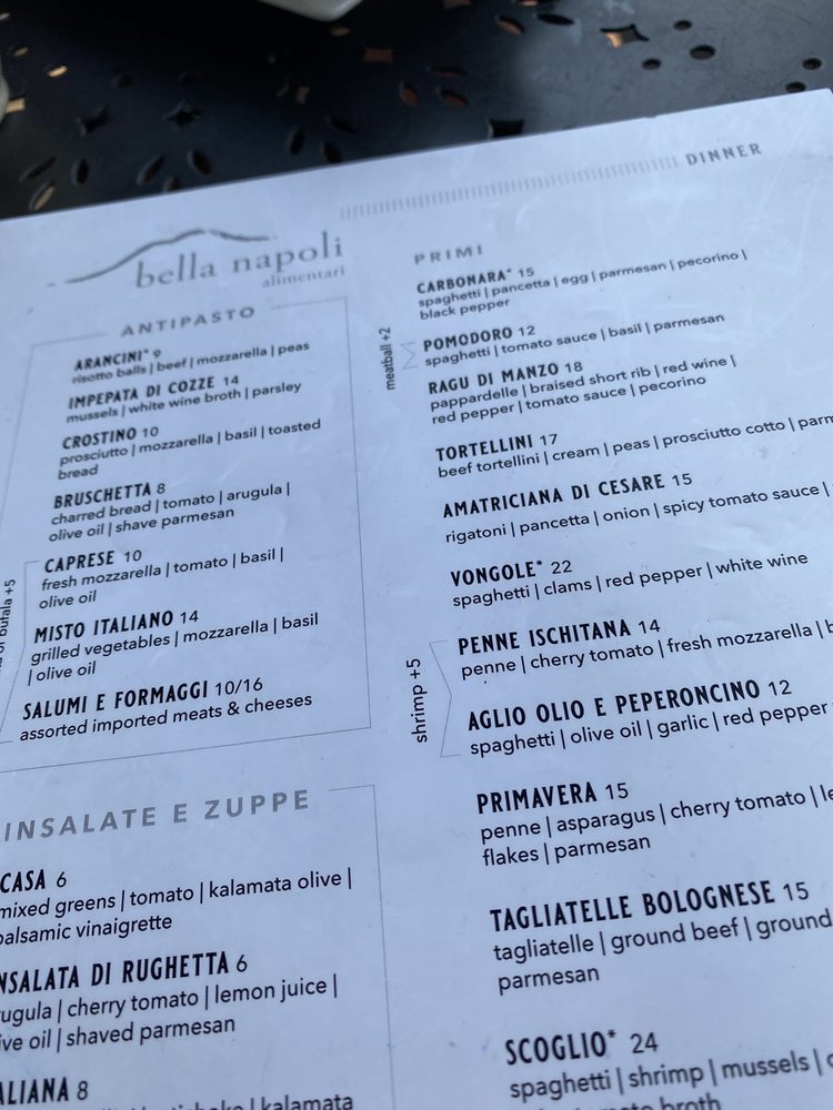 Bella Napoli Menu
